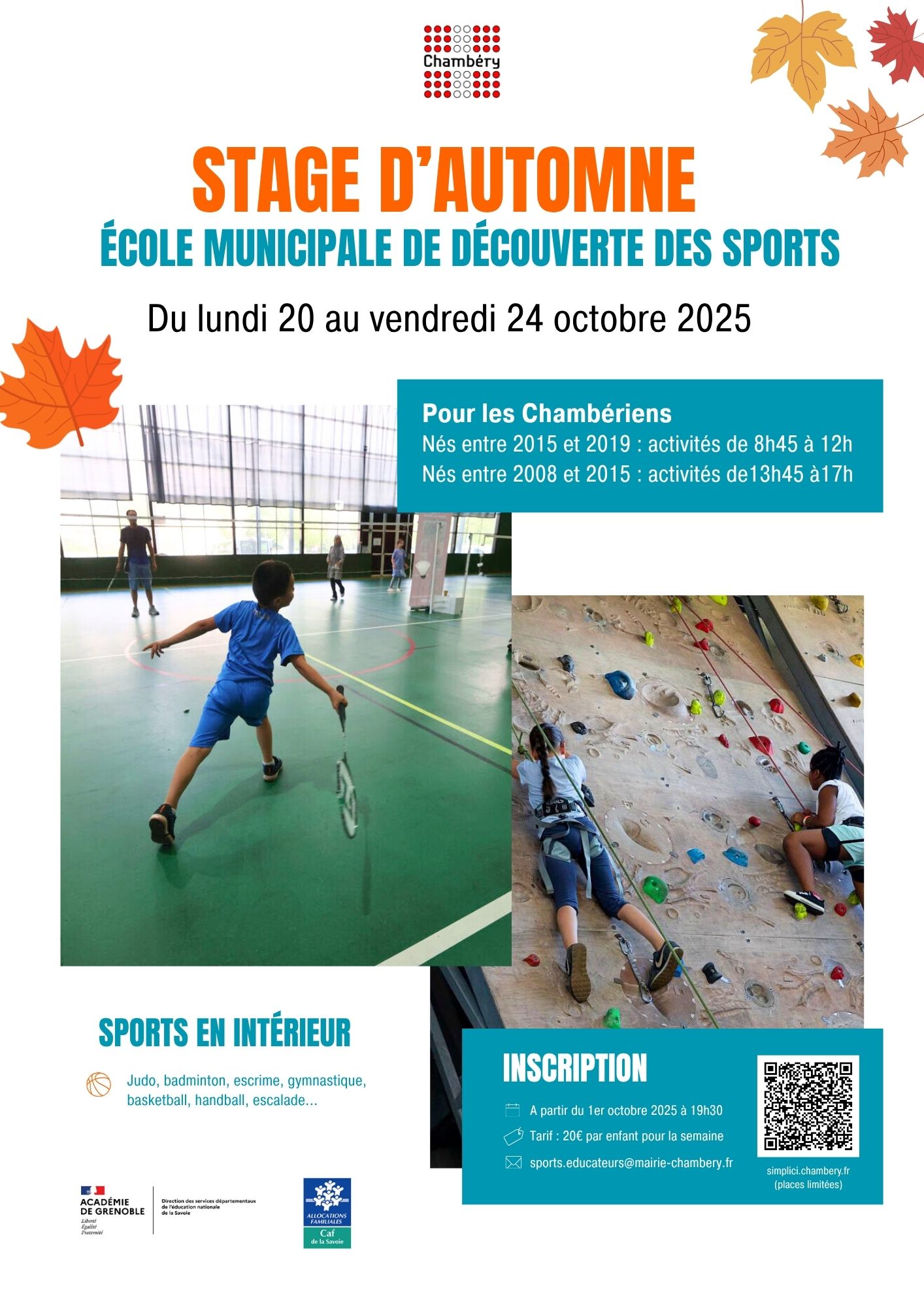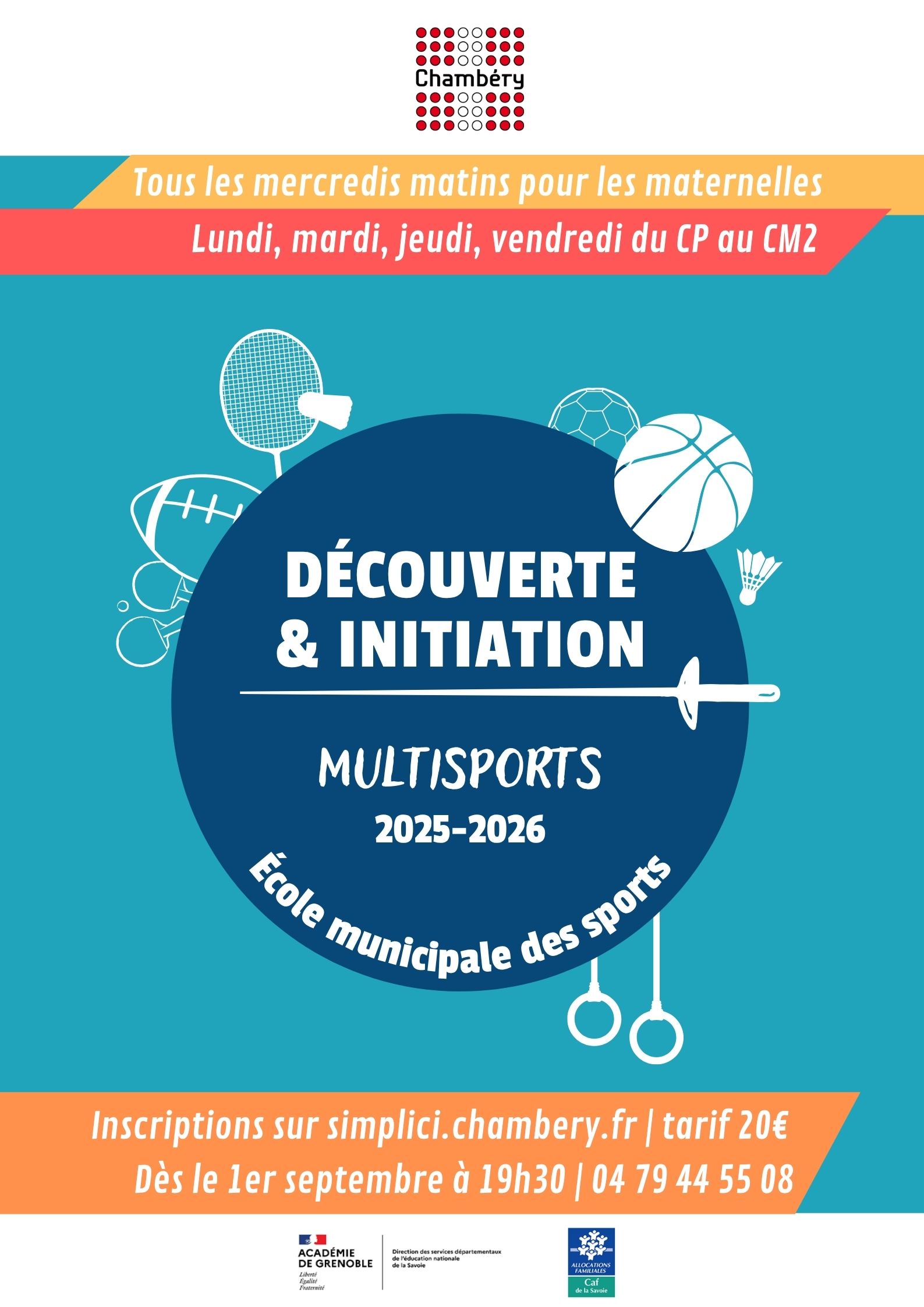Au sein de la Ville de Chambéry, j’ai été amenée à réaliser des affiches pour différents services dans le cadre de campagnes de communication. Parmi elles, en voici 3 : deux pour le service des sports et une autre pour le service inclusion. Les deux premières ont été imprimées et accrochées sur les panneaux d’affichages périscolaires. La dernière a été diffusée auprès du réseau d’associations du service inclusion pour impression.